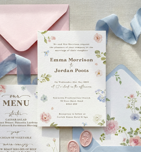 At Moonfairi, we take pride in designing and handcrafting beautiful, bespoke wedding stationery from our cosy countryside studio in South Hampshire, United Kingdom. Since our establishment in 2023, we have been dedicated to creating delicate, romantic wedding invitations that capture the charm of wildflowers and intricate paper details.