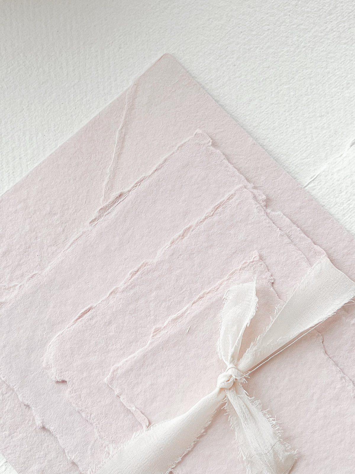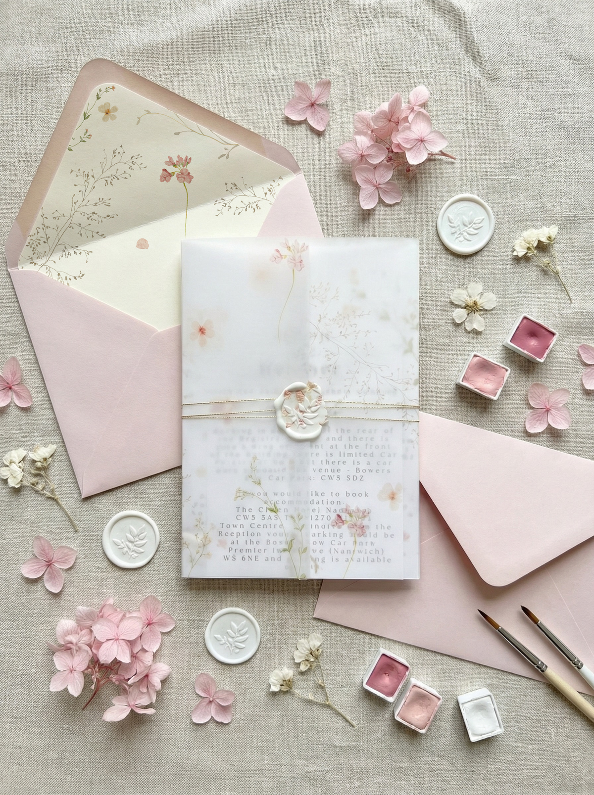 - What you get: You'll receive a physical example of the luxurious thick, uncoated paper we use, see the vibrancy of our watercolour prints, and feel the wonderful texture of the dusty rose envelopes.