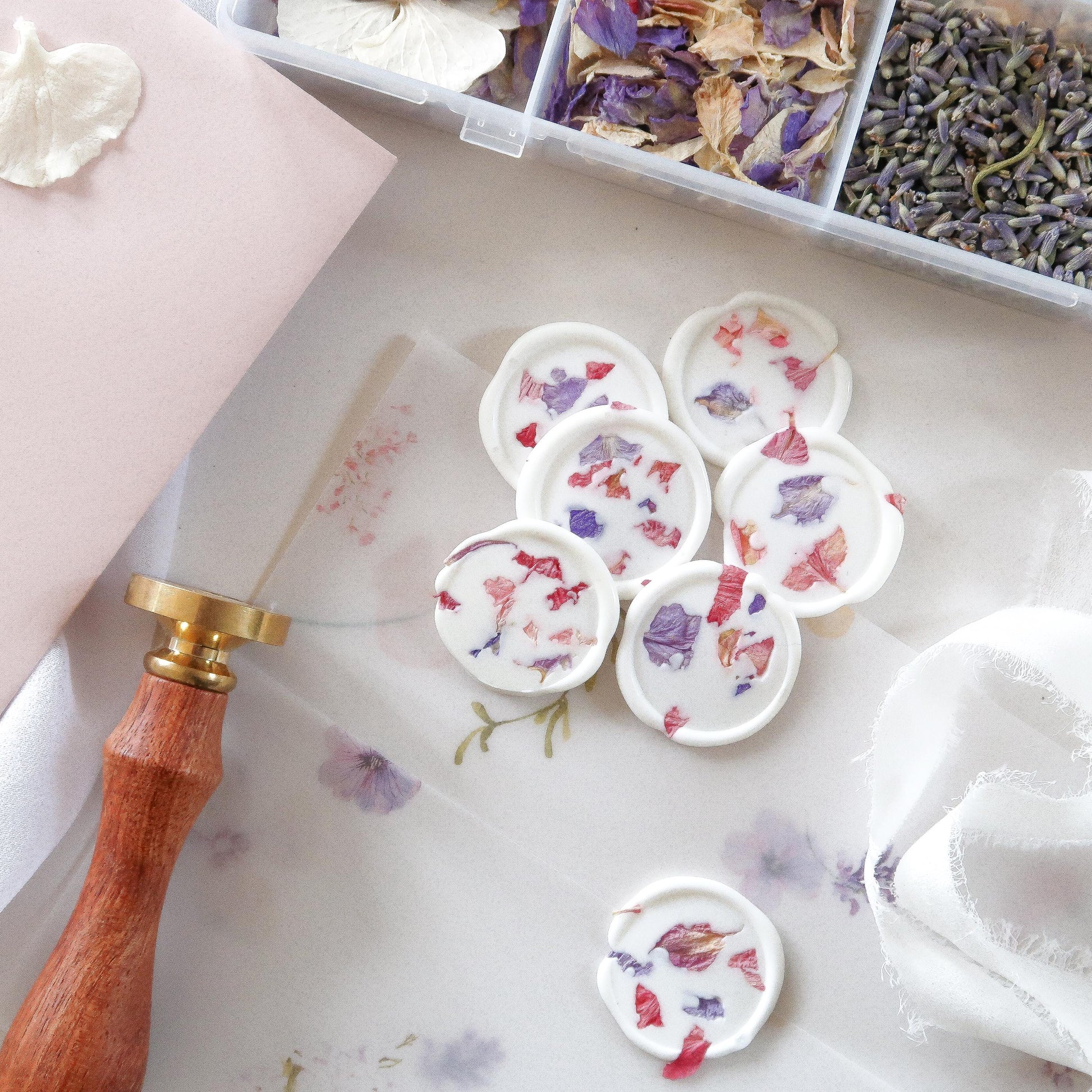 In this pack you will get 5 wax seals, all with different petal choices so you can choose your favourite before committing to your final order. If you have specific seals you would like in your pack, please send us a message and we will try our best to fulfil your request.