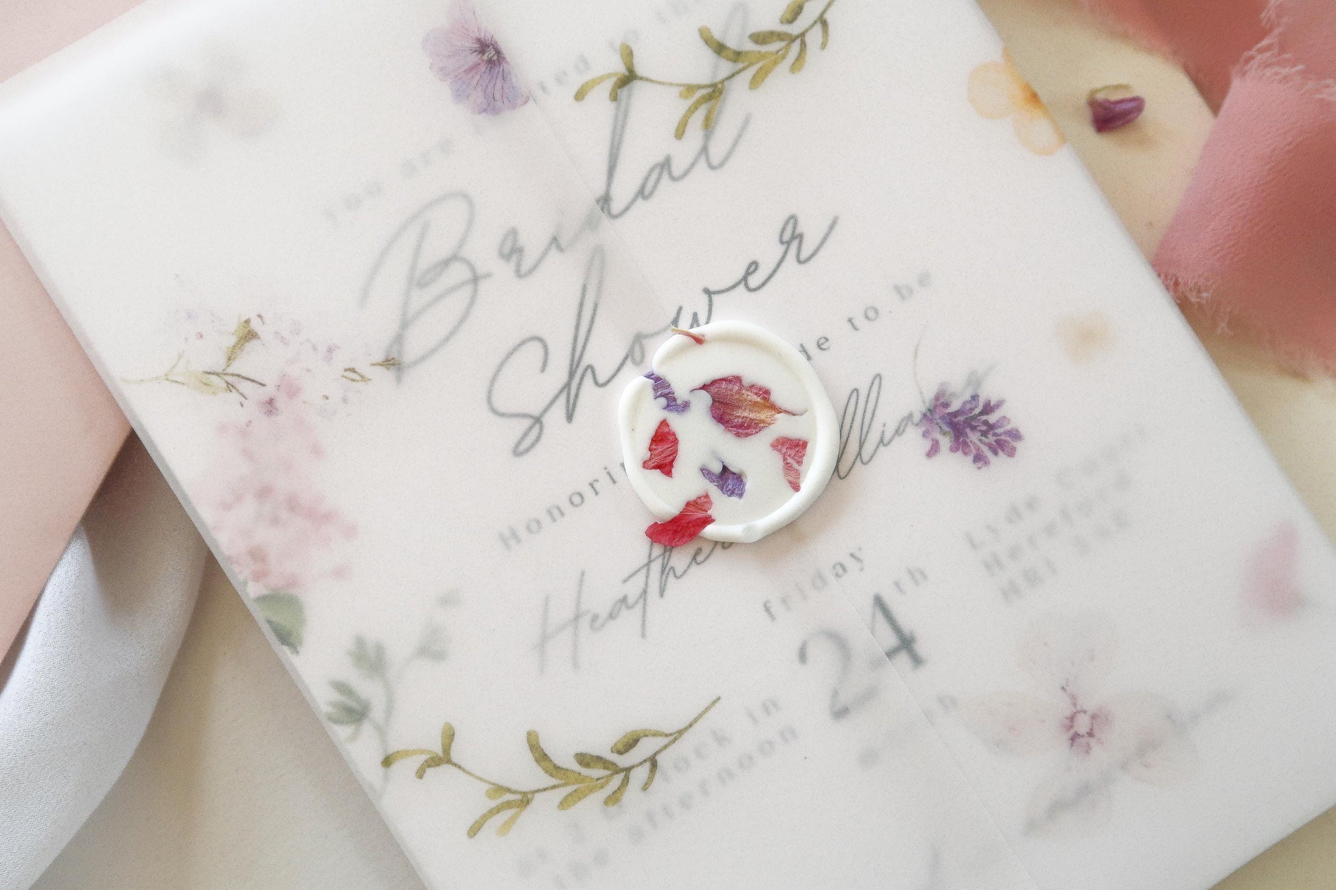 Each wax seal delicately handmade and crafted individually in our studio from fresh, each attached with their own seal on the back so you can easily attach to your project.