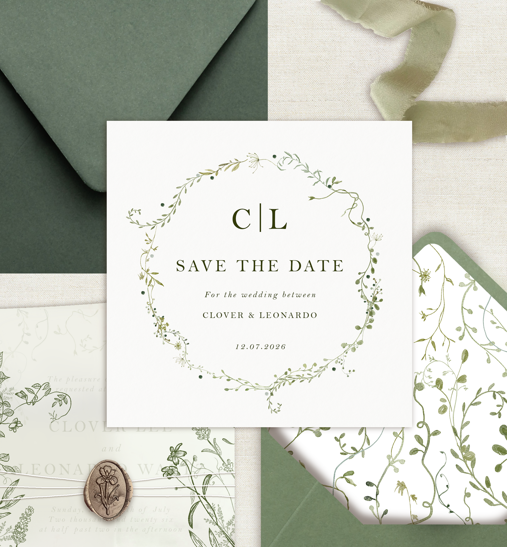 Elevate your invitation suite with this gorgeous sage green vellum jacket; crafted from premium 160gsm stock that's noticeably weightier than standard options. It's the perfect frame for your stationery, offering a sophisticated layer that invites embellishment. Add a drip of wax seal or a silky ribbon bow to create an unboxing experience your guests won't forget.