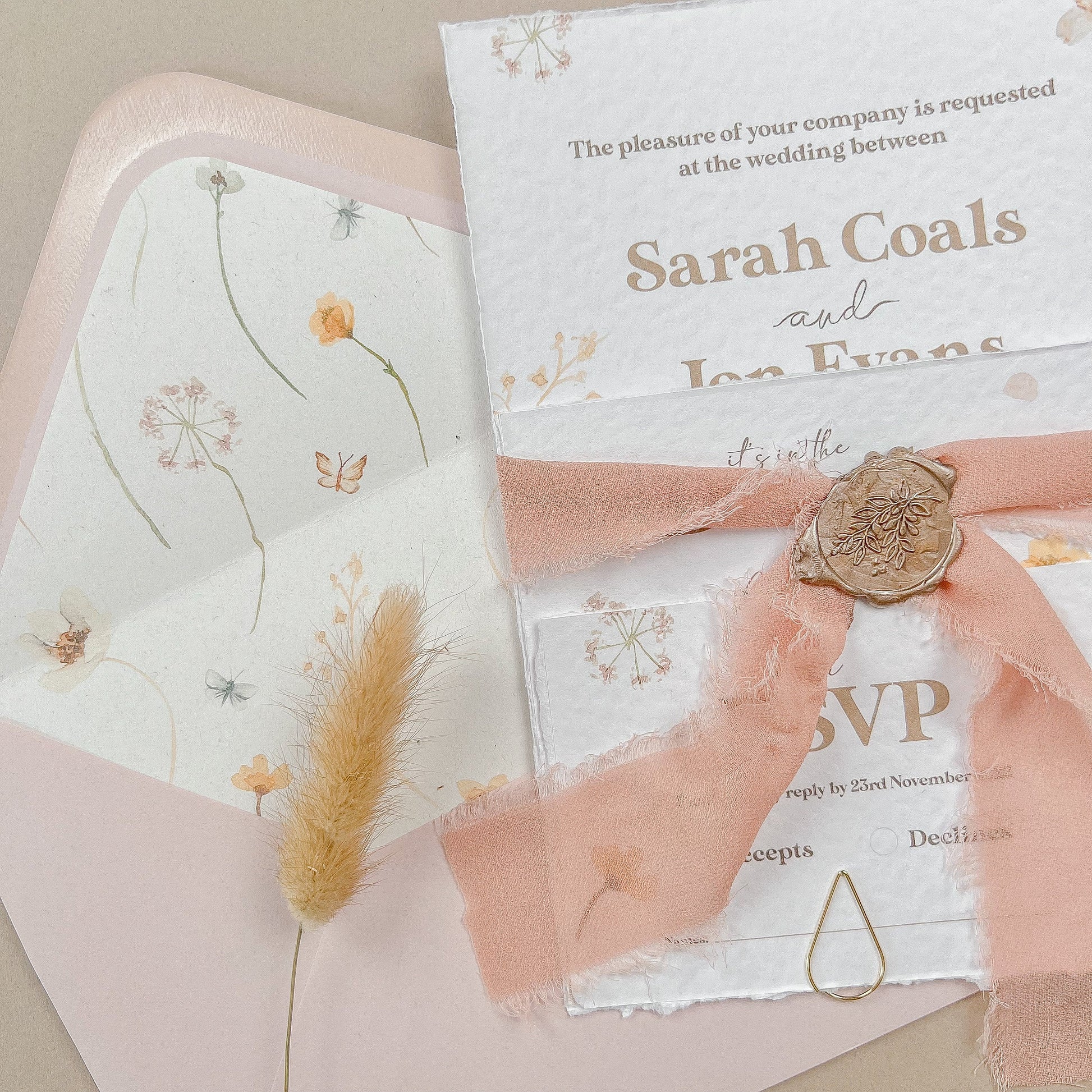 Pressed Wildflower Wedding Invitation Suite