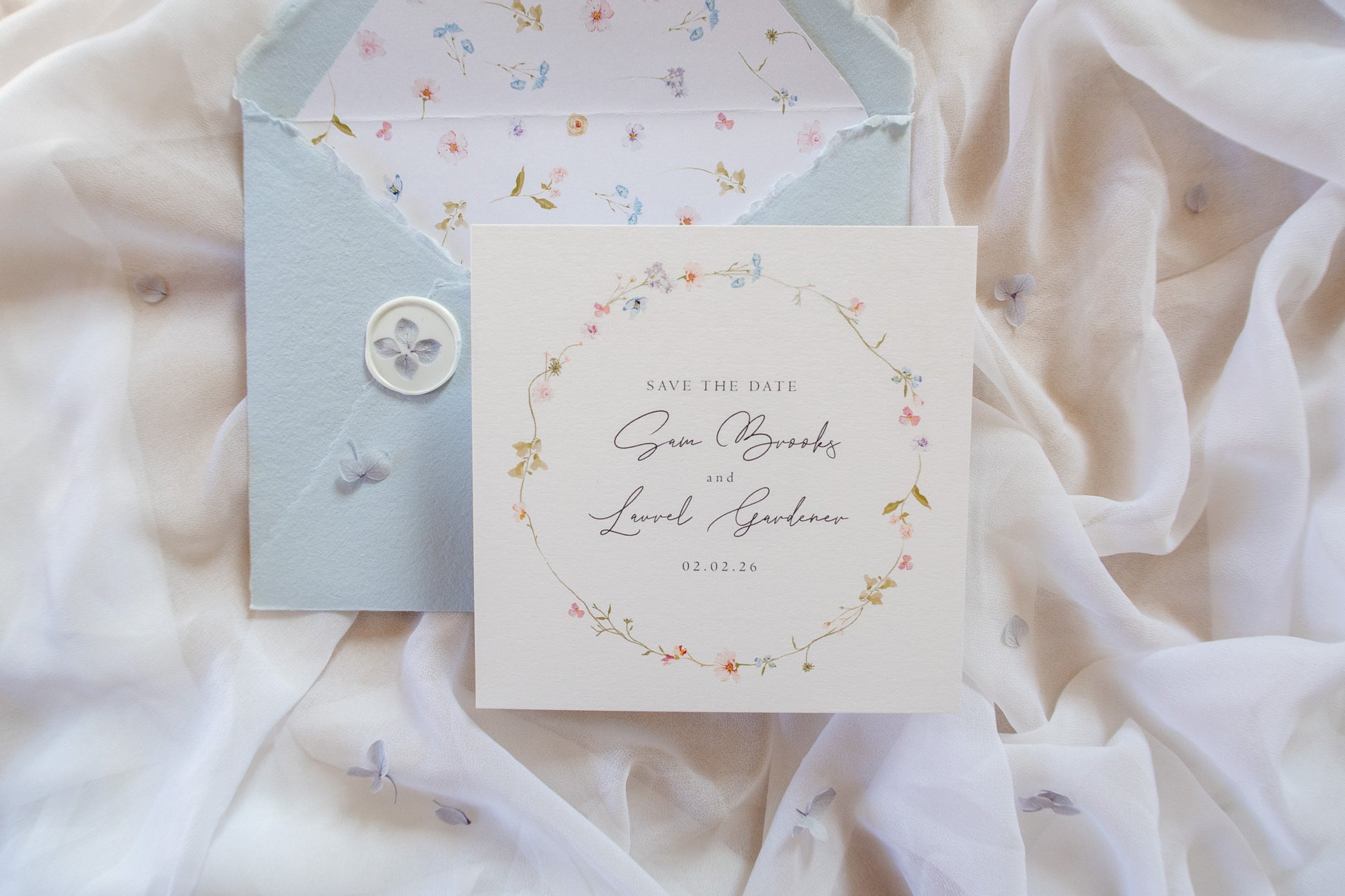 🌸 Either a square Save the Date card — ideal for adding a touch of elegance to your wedding announcements OR a A6 Save the Date card — for those who prefer a more traditional size.