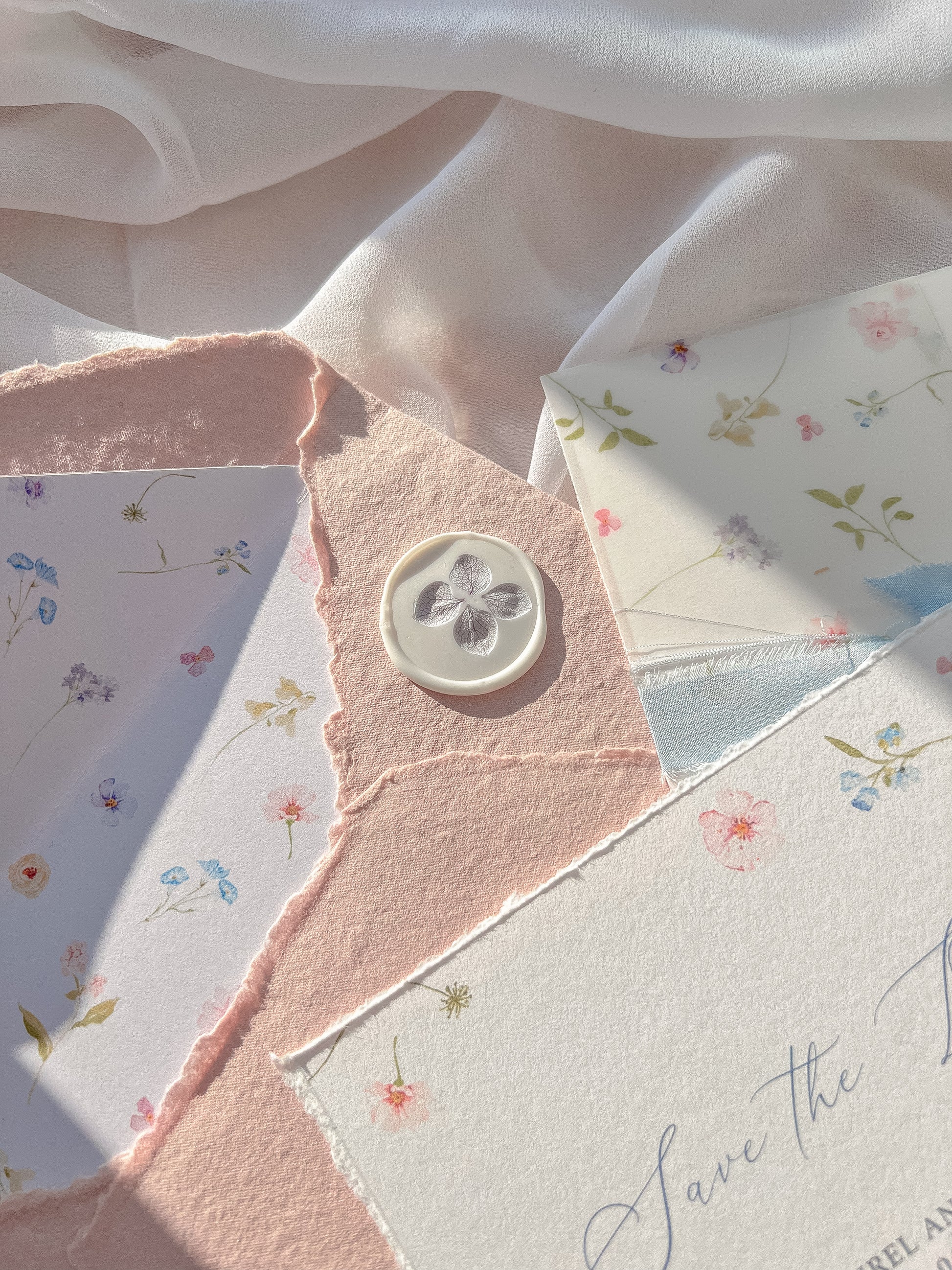🌸 A floral wax seal — the perfect final detail to elevate your invitations.