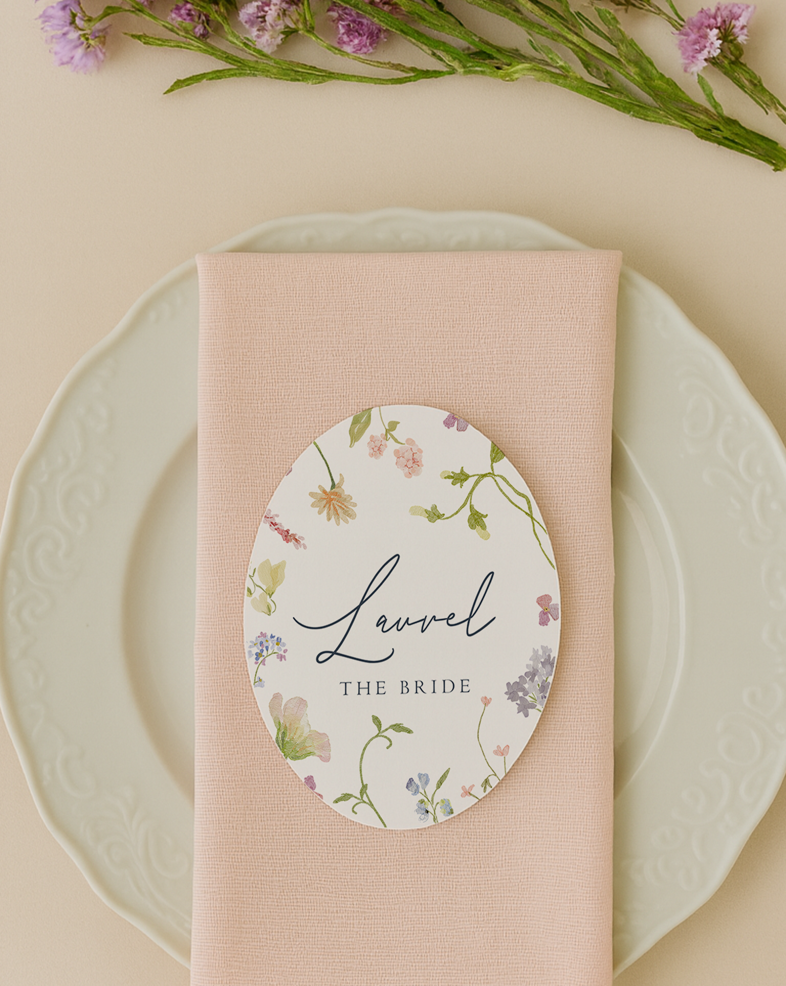 These Meadow Wreath Oval Place Name Cards feature an elegant oval shape adorned with a delicate meadow wreath design. Perfect for formal events and gatherings, they provide a refined touch to your table settings while clearly displaying guest names for easy seating. Crafted to enhance any occasion with understated style and professionalism.