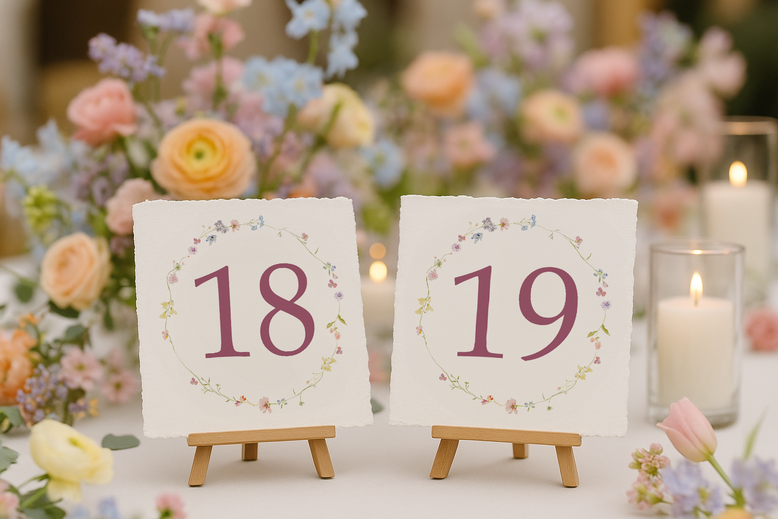 👉Bring a soft, romantic touch to your reception with our Pastel Meadow Table Numbers, perfect for garden weddings, spring receptions, or countryside-inspired celebrations. Each table number is printed on luxurious natural matte 300gsm cardstock, featuring a delicate deckled (hand-torn) edge for a timeless, artisanal look.
