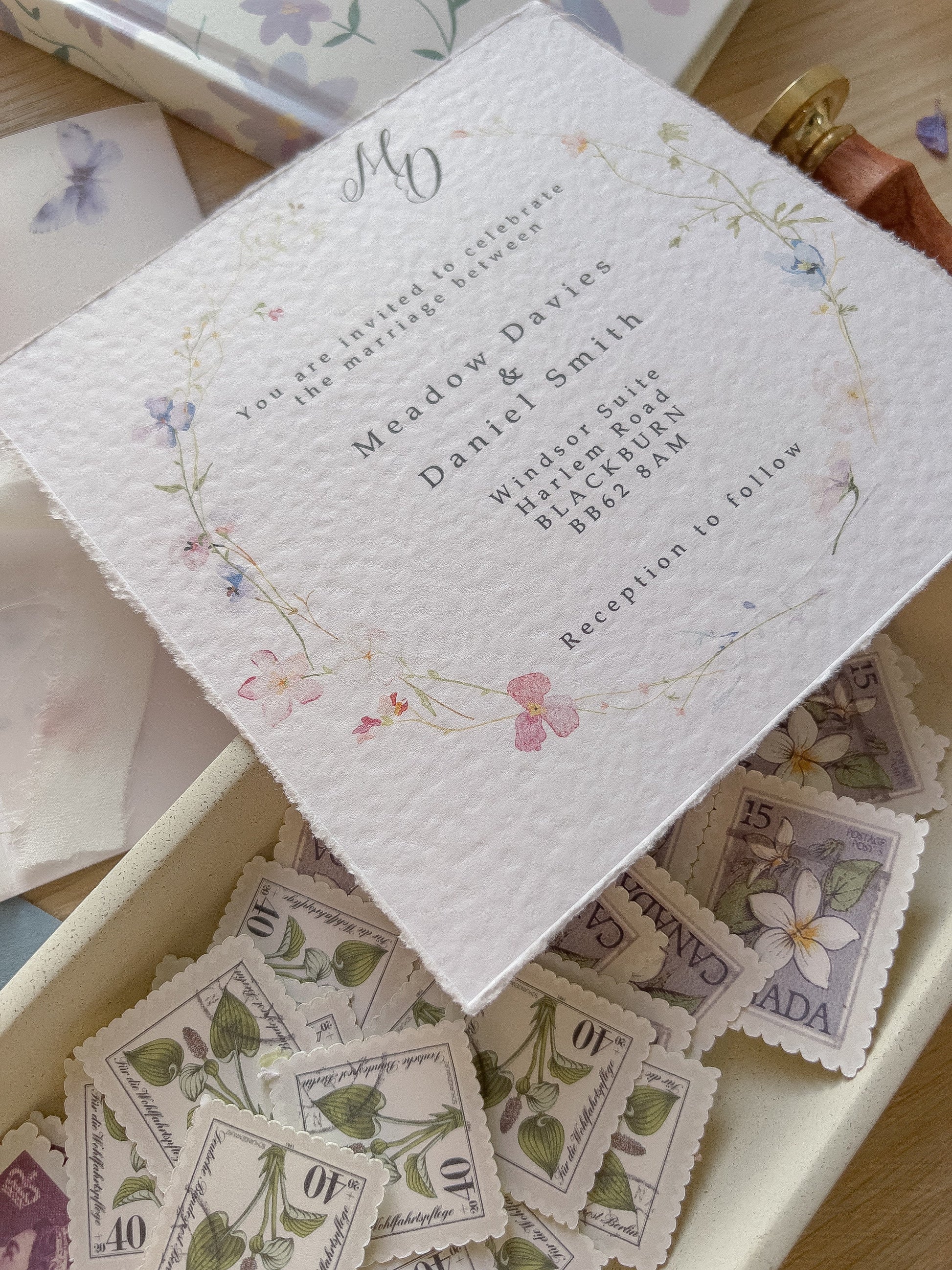 🌸 Delicate Watercolour Flowers: Each invitation is adorned with hand-painted watercolour floral designs, adding a touch of delicate beauty and sophistication to your wedding stationery. Perfect for that pastel floral wedding!