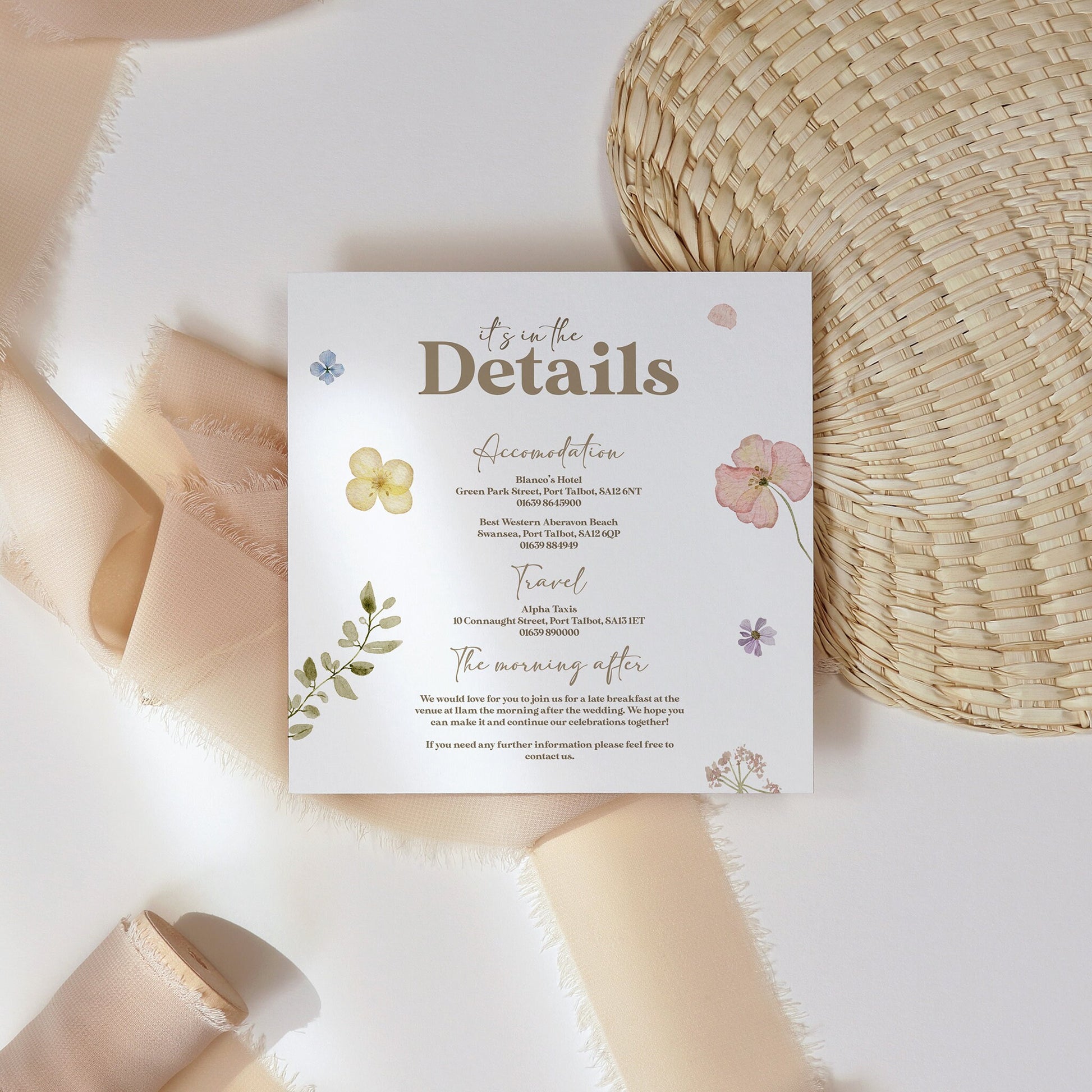 This card usually displays important information relating to accommodation, travel and guest attire requests - however you can add any information you deem to be important for your big day.