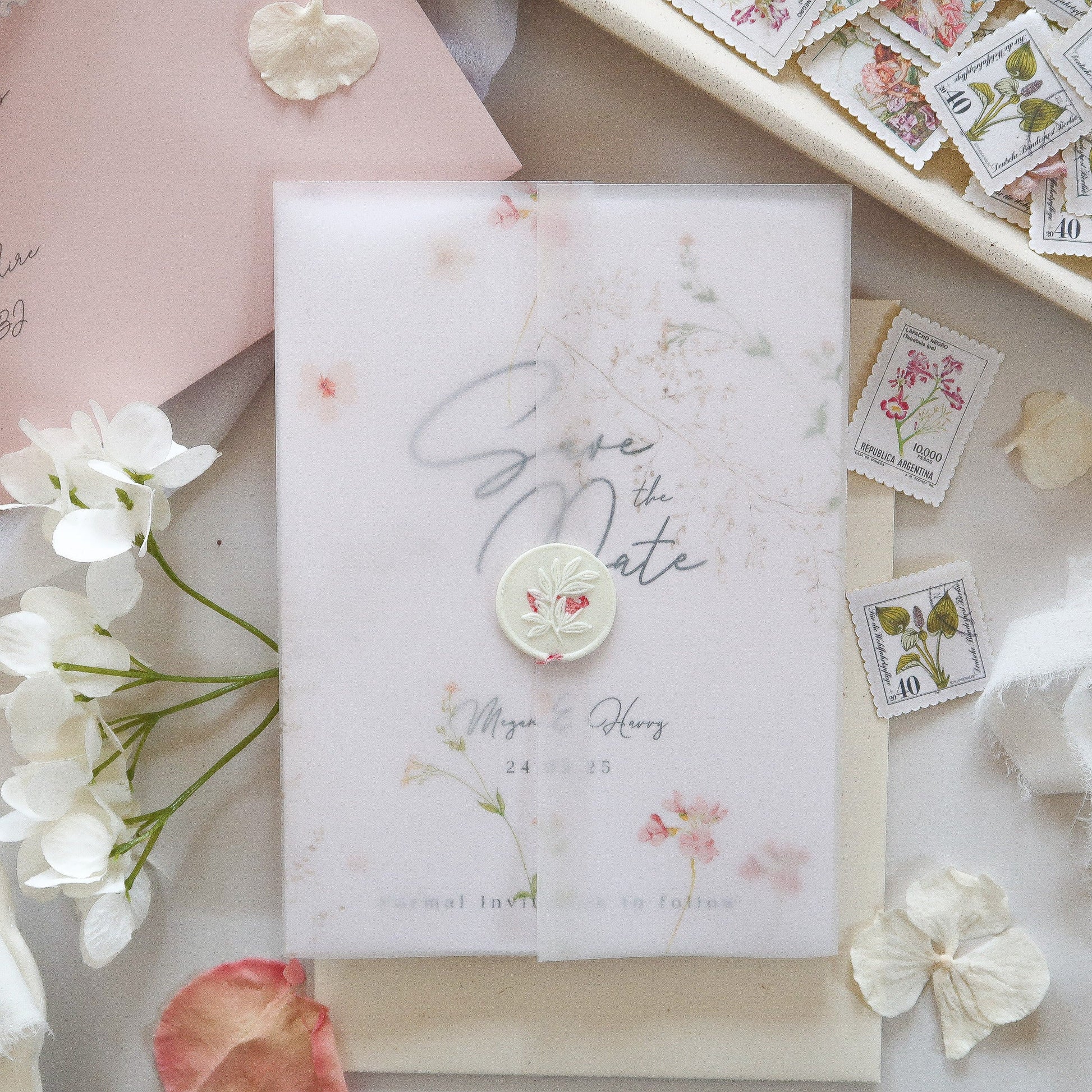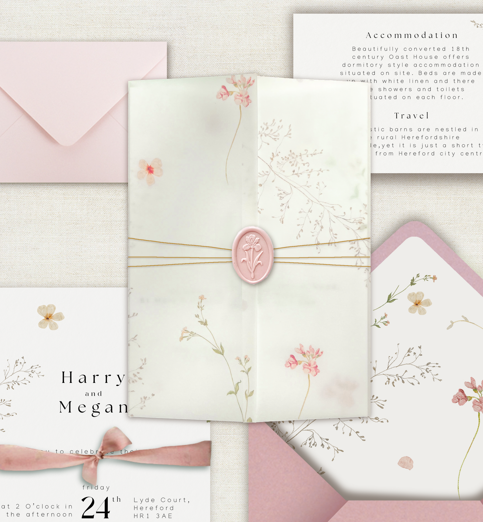 Every wax seal will come with a sticky back, so you can assemble the invites yourself. These are an add on feature, so please add your required amount to your basket separately. I have a large choice of wax seal colours, and can also add dried wildflowers to the final seal. Please contact me if you have any requests :)