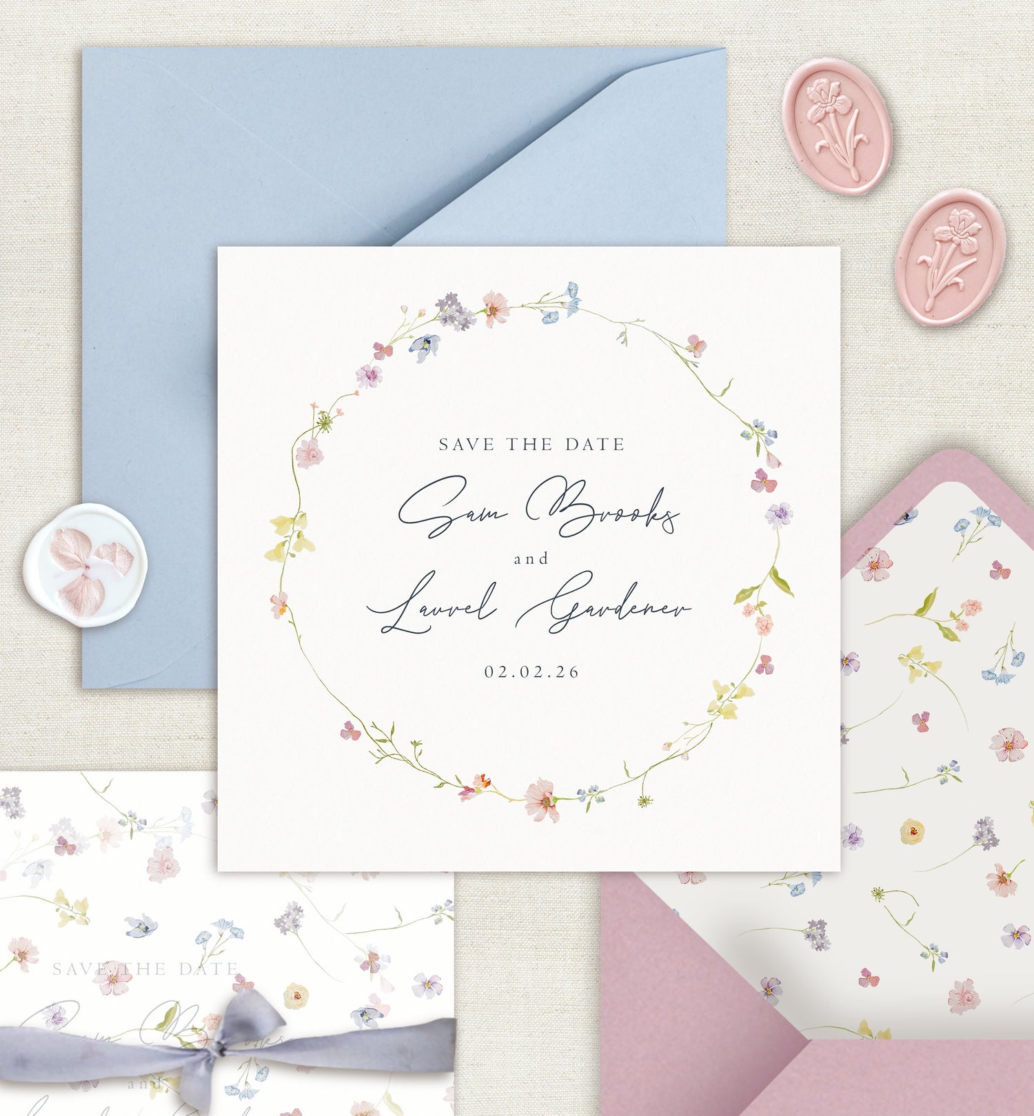 Our thoughtfully curated collections include everything you need to bring your wedding vision to life — from wildflower wedding invitations and pastel save the dates, to elegant on-the-day stationery such as menus, place cards, and table plans. Each piece is lovingly designed with soft hues, fine details, and premium materials, ensuring a timeless and cohesive aesthetic for your special day.
